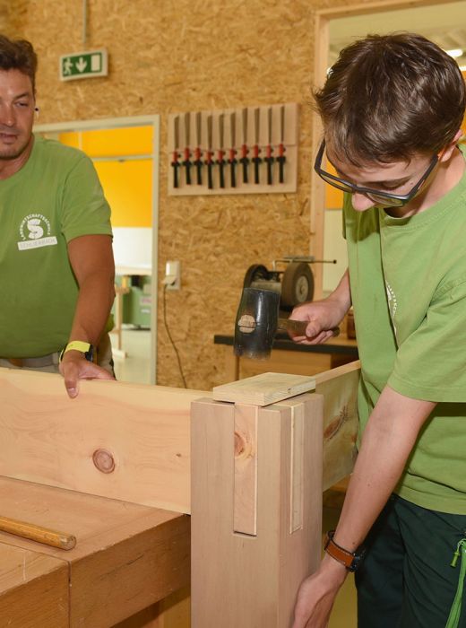 - 2000 m² Lehrwerkstätten im ehemaligen Meierhof (Schlosserei, Metall- und Landtechnik, Tischlerei, Rundholz und Zimmerei, Elektrotechnik)